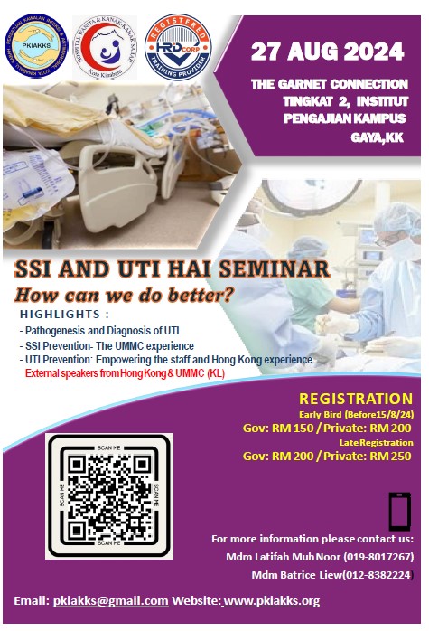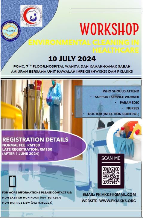 We're thrilled to share the success of our recent workshop on Environmental Cleaning in Healthcare, held on July 10, 2024, at PGMC, 7th Floor, Hospital Wanita dan Kanak-Kanak Sabah. This insightful event was jointly organized by Unit Kawalan Infeksi (HWKKS) and PKIAKKS, and we are grateful for the enthusiastic participation from 69 attendees representing Jabatan Kesihatan Negeri Sabah, HUMS, and SEDAFIAT SDN BHD.