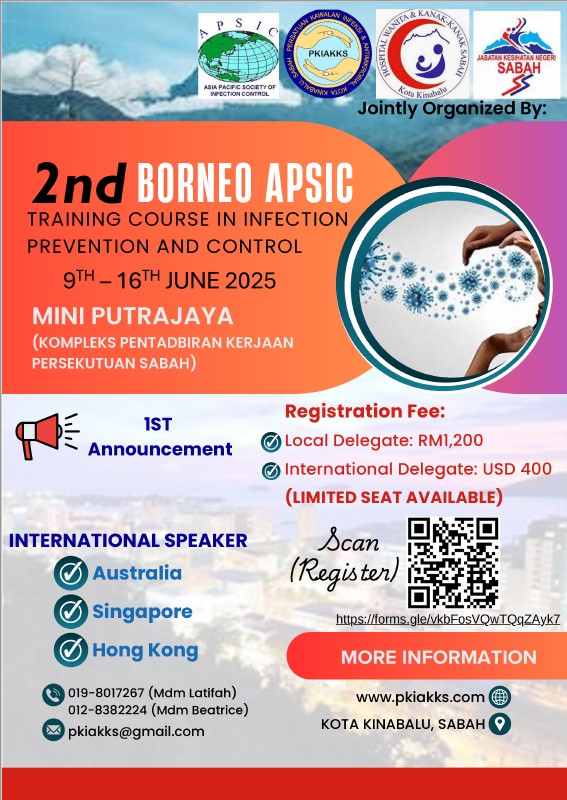 Join the 2nd Borneo APSIC (Asia Pacific Society of Infection Control) Training Program to gain in-depth knowledge and practical skills in infection control and prevention.